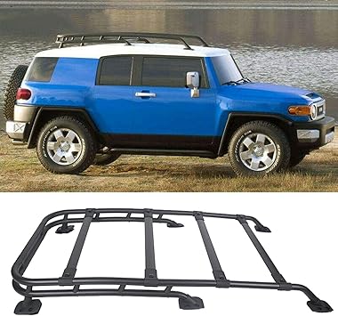 Ecotric compatible with 2007 2014 toyota fj cruiser roof rack rail top cargo luggage carrier black coated aluminum off road type 150lbs 5 0 out of 5 stars 2.