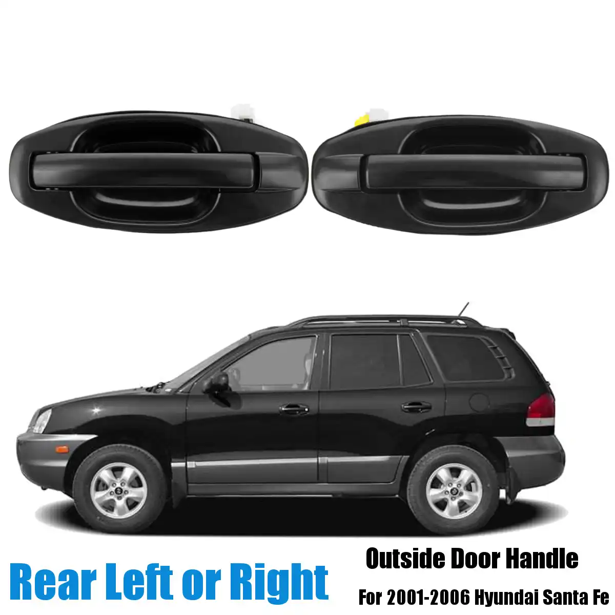 Rear right black outside door handle for hyundai santa fe for 2001 2006.
