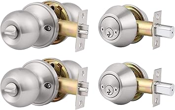 Twist To Lock Deadbolt Lock Keyless Triplets Lock Keyed Alike Lathe Finish After 304 Stainless Steel Casting Front Door Lock Single Cylinder Deadbolt And Door Knob With Keyless Locking Design Amazon Com