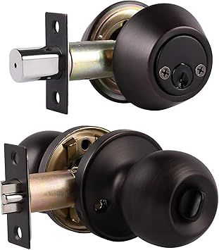 5 Pack Keyed Alike Entry Door Knobs Keyed Door Lock Double Cylinder Keyed Deadbolt With Matching Round Style Knob Classic Oil Rubbed Bronze Finish Door Hardware Lock Amazon Com